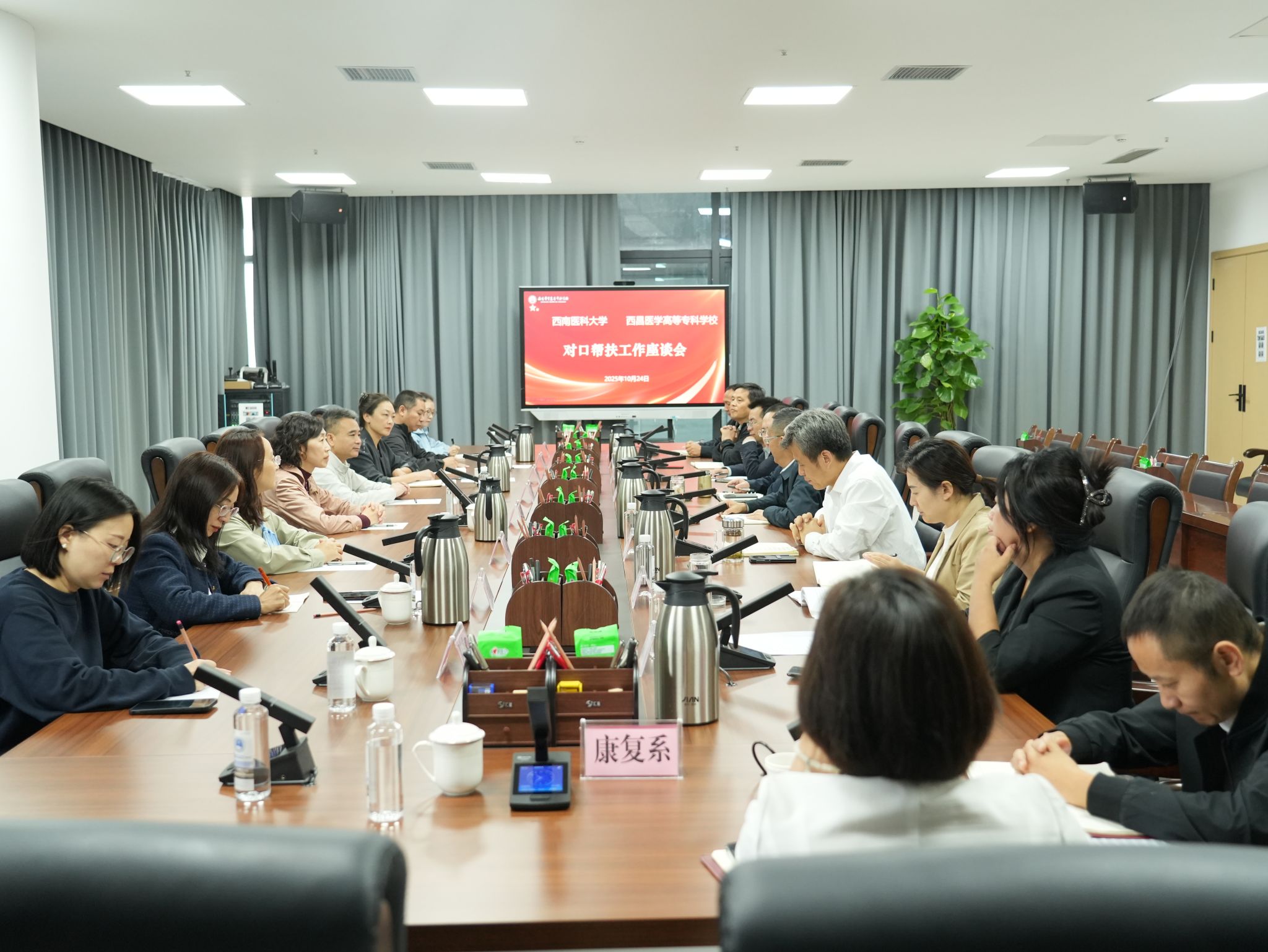 在对口帮扶座谈会上,西昌医学高等专科学校党委副书记、校长许小红介绍了学校发展现状及帮扶需求。双方围绕“专业建设、师资赋能、人才培养、科学研究、产业转化”等内容展开深入研讨。西昌医学高等专科学校党委书记陈方勇主持会议并表示,西南医科大学的精准帮扶为学校发展注入关键动能,期待后续深化协作、共促成长。西昌医学高等专科学校党委委员、副校长张春来,党委委员、副校长程志敏参加会议。