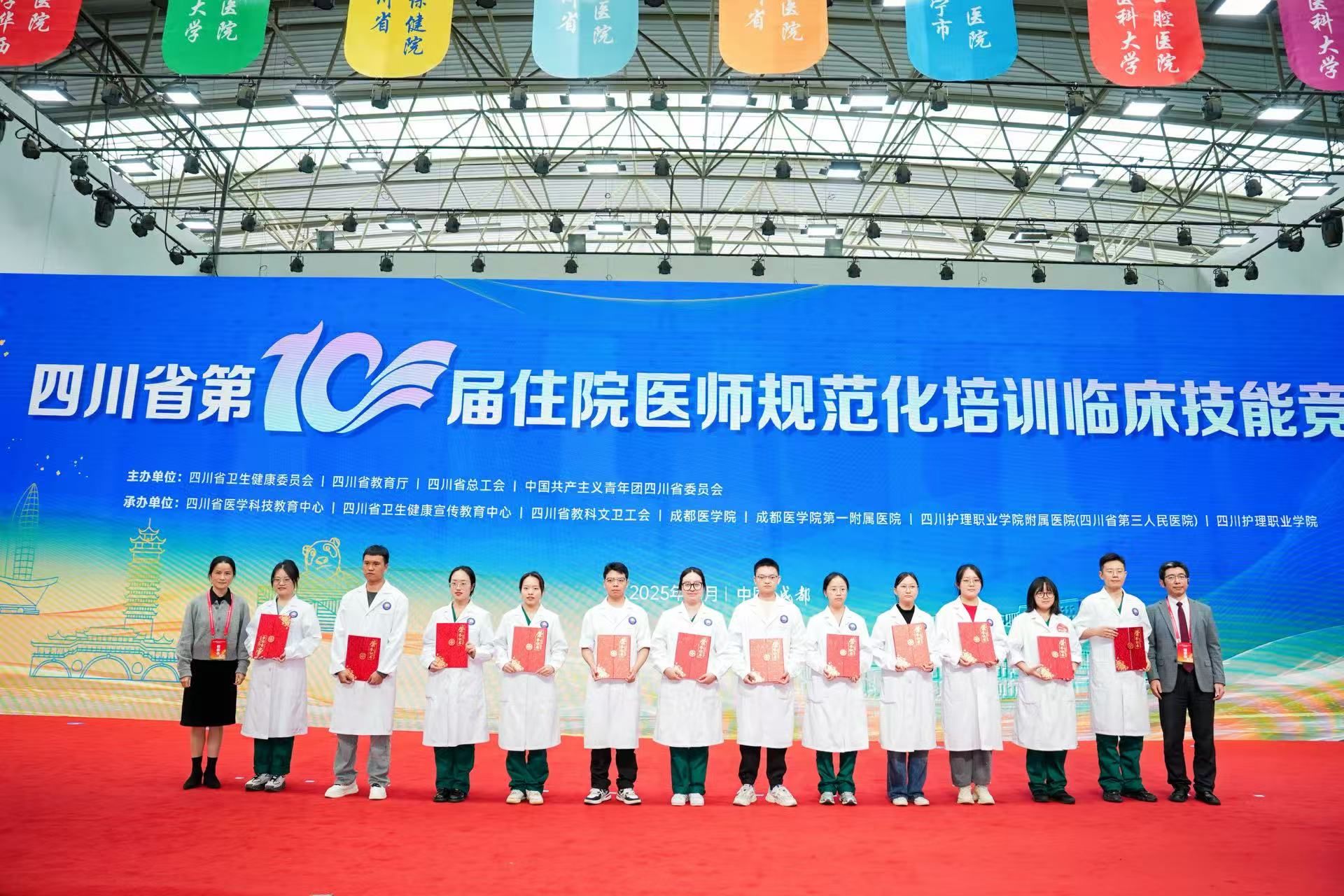本次竞赛由四川省卫生健康委员会、四川省教育厅等单位联合主办,四川省医学科技教育中心、成都医学院等单位联合承办。大赛首次设立口腔类单项赛,吸引了全省44家住培基地共281名选手参赛。为备战此次竞赛,医院系统组织院内选拔,并由资深指导医师团队为选手制定个性化培训方案,通过模块化教学、高强度模拟实战等方式,全面强化其临床技能与综合素质,为优异成绩奠定了坚实基础。