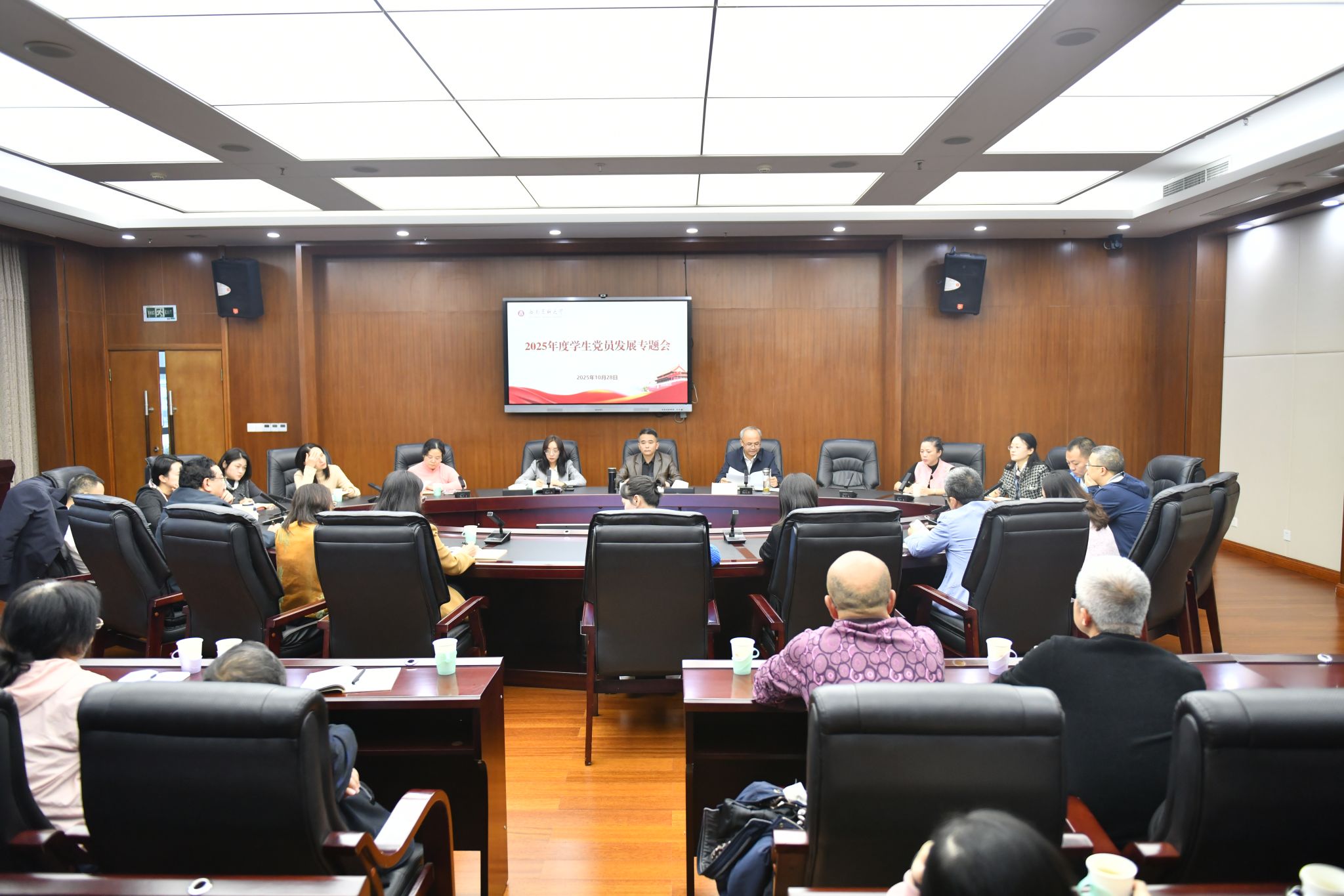 10月28日,学校在城北校区一会议室召开2025年学生党员发展专题会。学校党委副书记蒋通荣,校党委常委、组织部部长柏珂,院系分管学生党建工作的党委书记或副书记,科研创新党总支书记,专职组织员参加会议。会议由党委组织部副部长唐开秀主持。