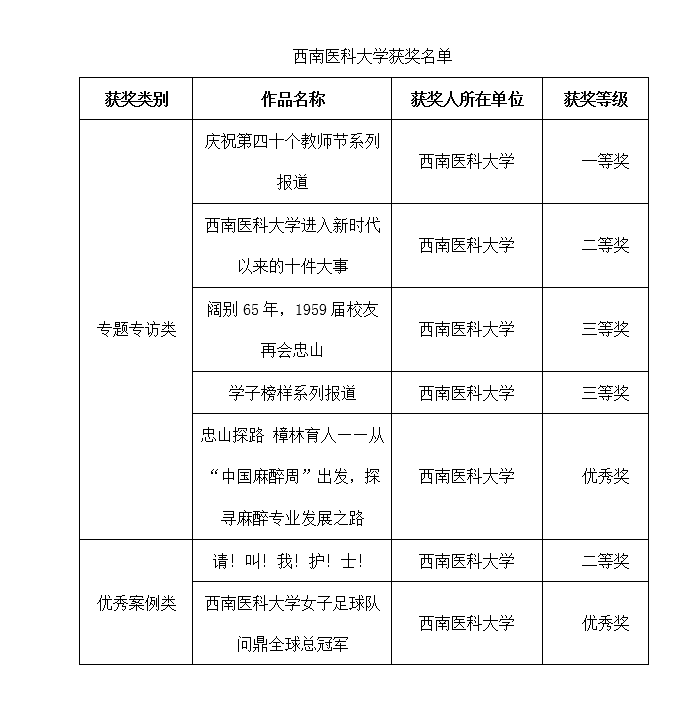 据悉,四川省高等学校校报研究会与四川省高校网络思想政治工作中心联合开展了“四川高校年度好新闻和优秀传播案例评选活动”,以全面梳理四川高校好新闻和优秀传播案例年度成果,推广可复制、可借鉴的先进经验。活动受到广大教育新闻从业者的关注和参与,经专家严格审核与综合评议,评选出一等奖11名、二等奖15名、三等奖22名、优秀奖29名,我校7件作品成功上榜。