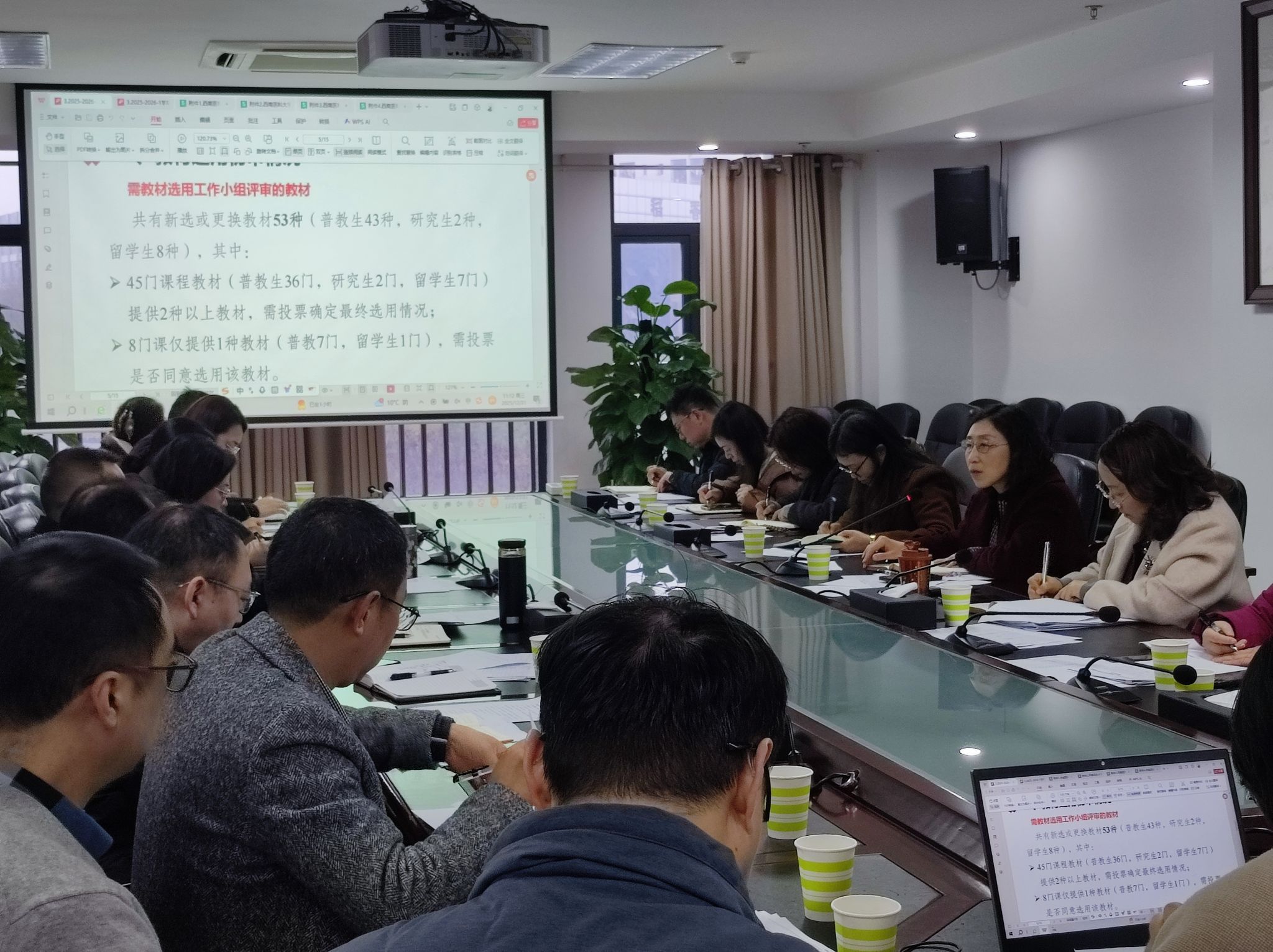 会上,教务处汇报了2025-2026-2学期教材选用情况,本次共有新选或更换教材53种,其中普教生43种,研究生2种,留学生8种,其余均选用往年已审定过的教材。各院系分管教学负责人对所选教材的选用情况进行了说明,学校教材选用工作小组成员对新选或更换的教材进行逐一审定,本次审定投票采用“问卷星”在线投票系统,大幅提高了评审效率。