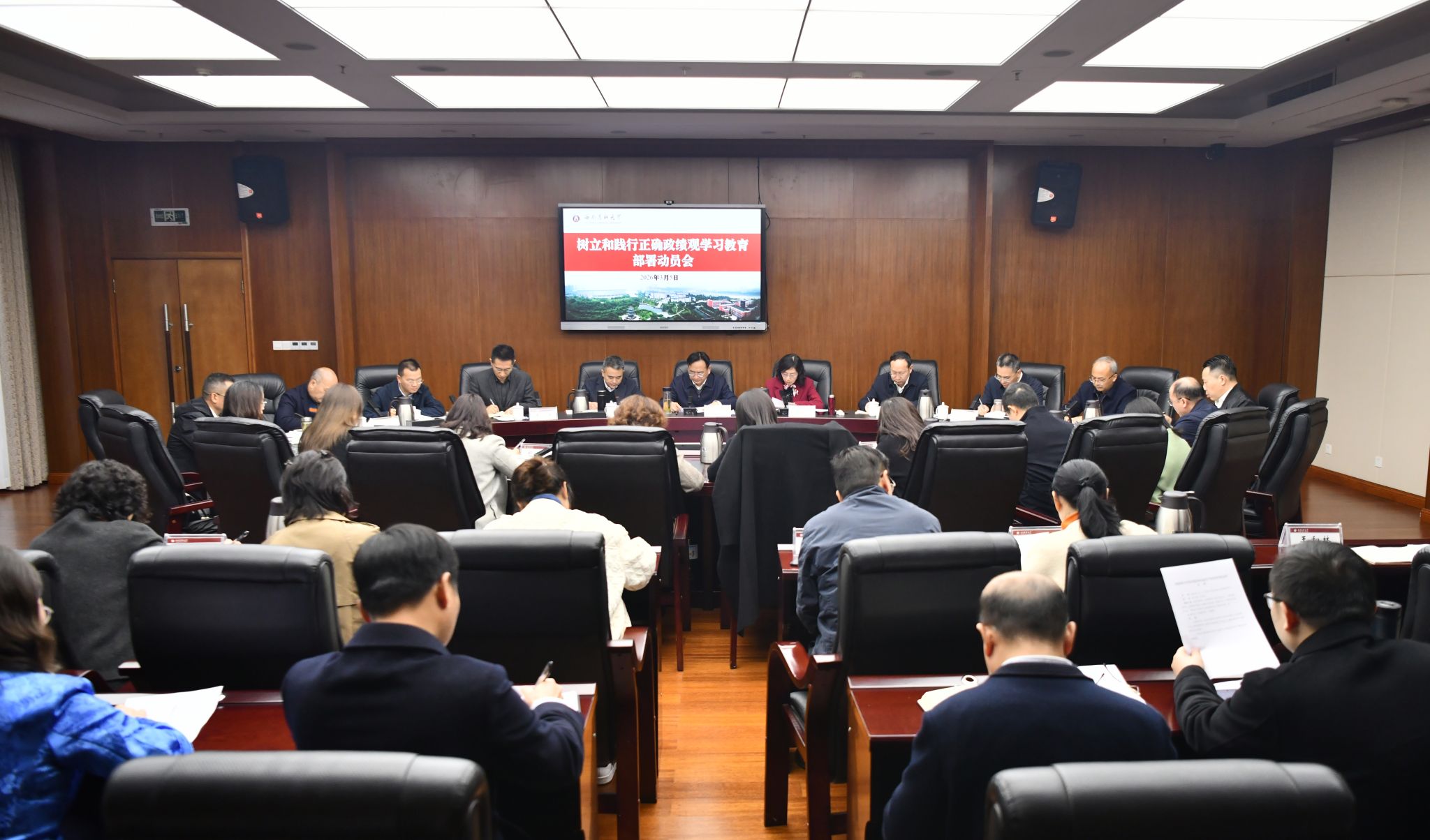 会议强调,开展树立和践行正确政绩观学习教育是今年学校党建工作的重要政治任务,全校各级党组织要切实加强组织领导,压实主体责任,二级党组织书记履行第一责任人职责,班子成员落实“一岗双责”,形成一级抓一级、层层抓落实的工作格局。要坚持分类指导、精准施策,针对职能部门、教学科研单位、附属医院等不同主体精准推进,坚决杜绝“两张皮”“一刀切”。要强化监督问效与宣传引导,学习教育工作专班开展常态化督查,对推进不力的单位和干部严肃追责问责,同时宣传学习教育好经验好做法,营造崇尚实干、担当作为的良好校园氛围。要统筹抓好学习教育与学校中心工作,做到两不误、两促进,以正确政绩观引领学校各项事业高质量发展,奋力实现“十五五”良好开局,为加快建设特色鲜明的西部高水平医科大学作出新的更大贡献。