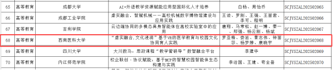 近日,四川省教育厅公布了2025年国家智慧教育平台、数字校园应用场景案例入选名单,我校两个案例入选优秀案例。我校《知识图谱赋能,AI情景助学—〈药事管理学〉智慧课程个性化学习创新实践》获评国家智慧教育平台应用优秀案例;《“虚实融合.文化浸润”基于VR的医学教育与校园文化协同育人实践》获评数字校园应用场景优秀案例。