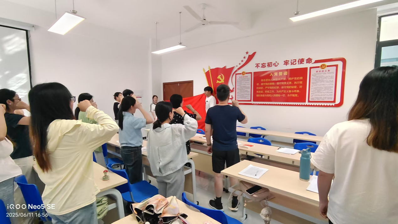 全体参会人员在赖秀娟同志带领下重温入党誓词,表明对党忠诚,为人民服务,为共产主义奋斗终身的决心。