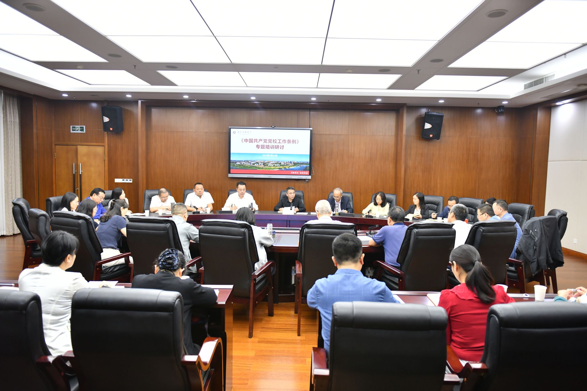 9月26日,学校党校在城北校区一会议室召开《条例》专题培训研讨会。学校党委副书记蒋通荣出席并讲话,各二级党组织书记、党校办公室成员、各分党校校长及校务委员代表参加研讨。会议由学校党委常委、党校副校长柏珂主持。