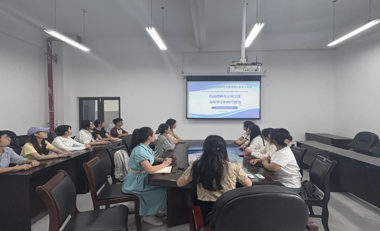 党支部书记伍虹飞组织支部党员深入学习贯彻习近平新时代中国特色社会主义思想,特别是习近平总书记在纪念中国人民抗日战争暨世界反法西斯战争胜利80周年大会上的重要讲话精神。详细解读抗战精神的内涵,强调青年学子应将抗战精神融入公共卫生实践,积极发挥党员的先锋模范作用。