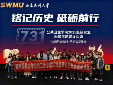 为深化爱国主义教育,筑牢新生班级凝聚力,激发同学们的学科使命感,9月22日,公共卫生学院组织2025级研究生新生开展了“铭记历史,肩负使命”主题班级建设活动,集体前往万达影院观看爱国主义题材电影《731》。