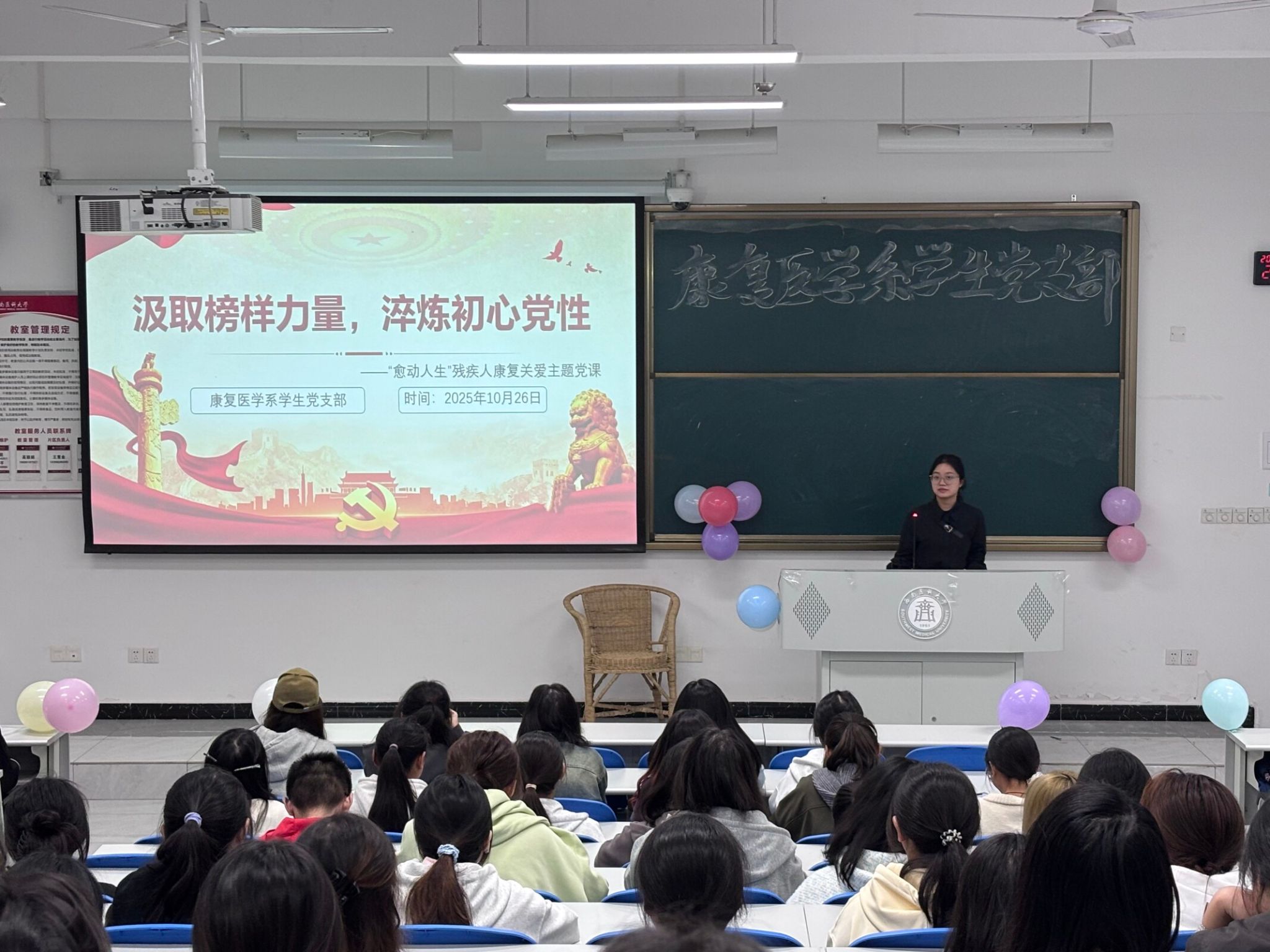 近日,康复医学系学生党支部在海川楼506教室开展了“汲取榜样力量,淬炼初心党性”主题活动。本次活动由康复医学系学生党支部书记侯萍主讲,全体党员参加。