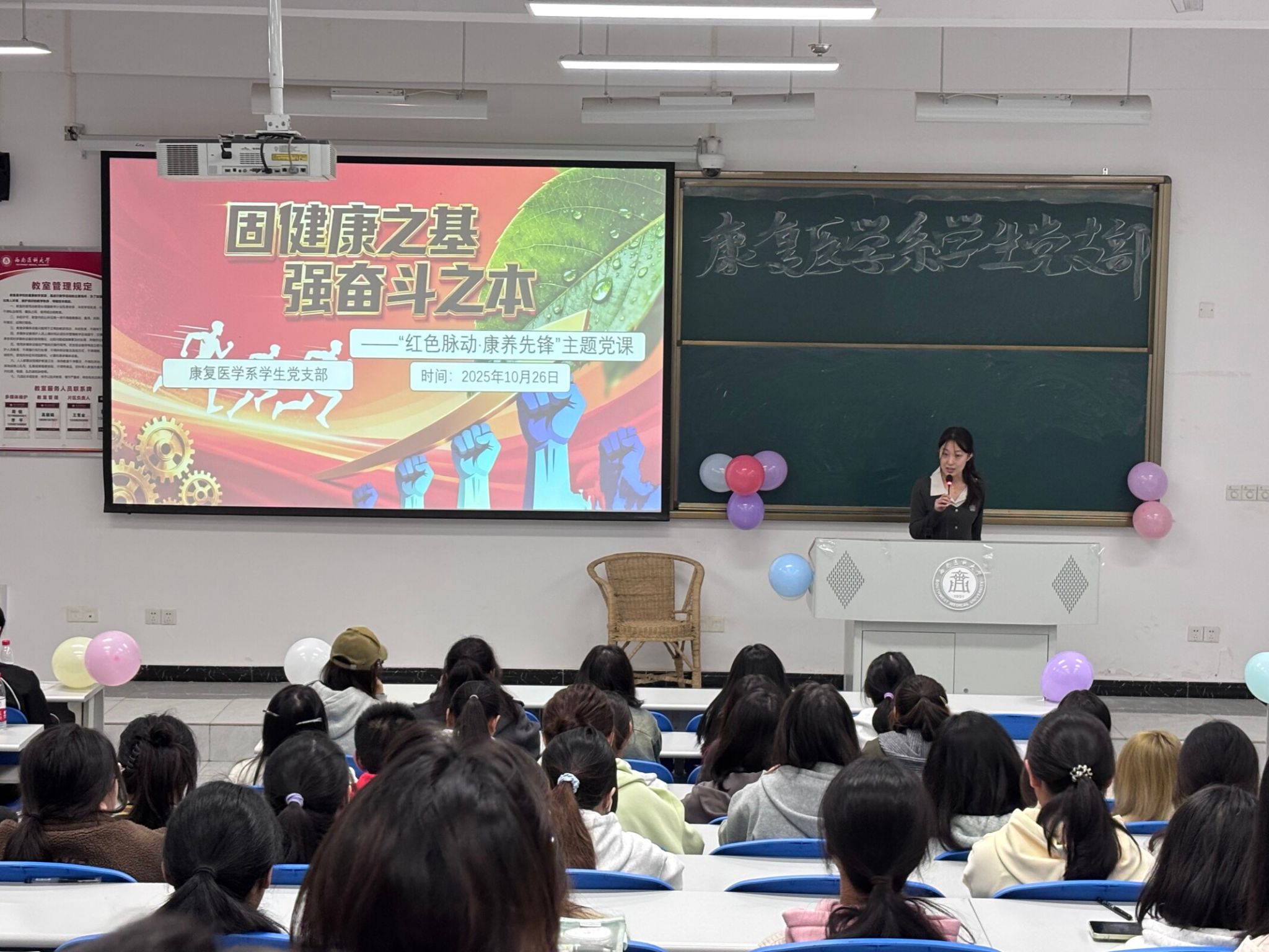为厚植师生健康理念,以强健体魄涵养奋斗底气,用科学养生赋能成长征程,10月26日,康复医学系学生党支部于学海楼304教室举办了“固健康之基,强奋斗之本”养生专题党课。活动由康复医学系学生党支部书记侯萍主持,现场秩序井然、求知氛围浓厚,为校园注入崇尚健康、践行奋斗的新风尚。