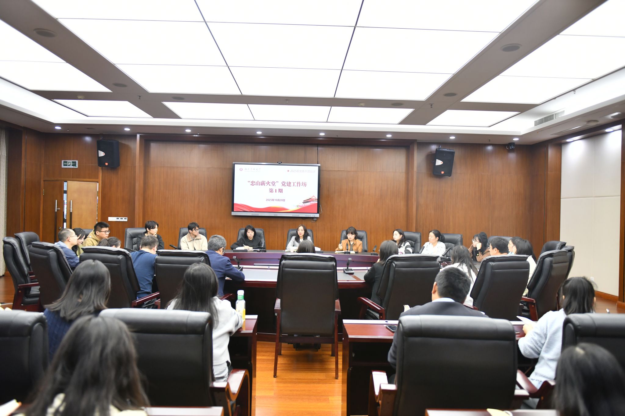 10月28日,“忠山薪火堂”党建工作坊第一期在城北校区一会议室开讲,全校学生党支部书记参加。
