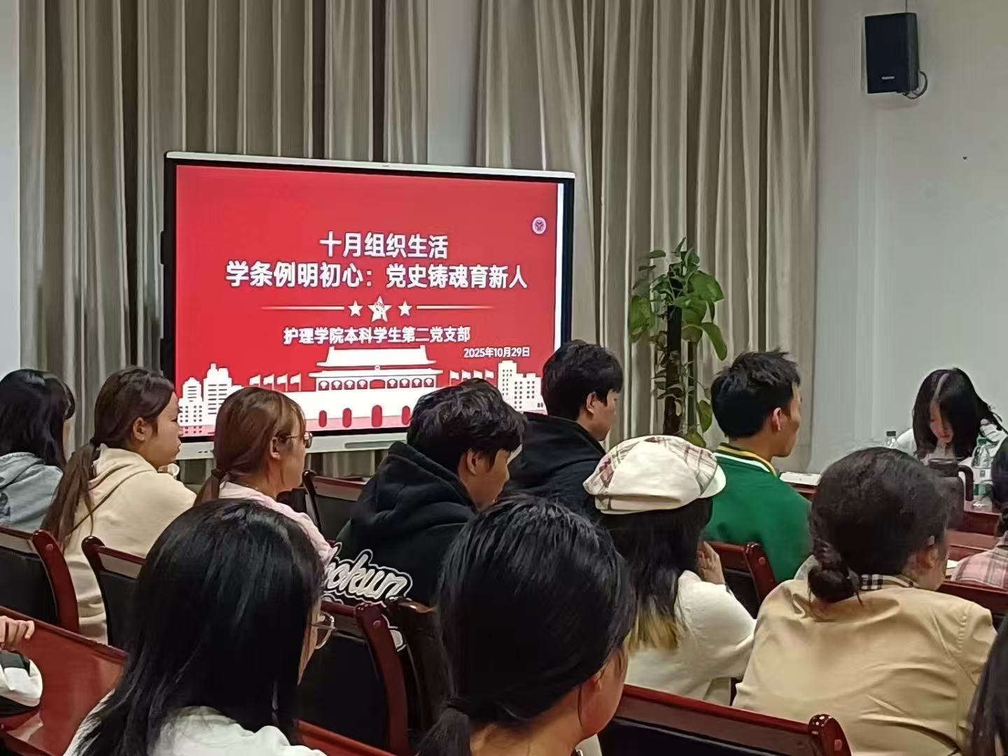 10月29日,护理学院本科学生第二党支部在海川楼四楼会议室开展10月政治学习、组织生活会。会议由党支部书记王建主持,支部全体党员和部分发展对象、入党积极分子参加。
