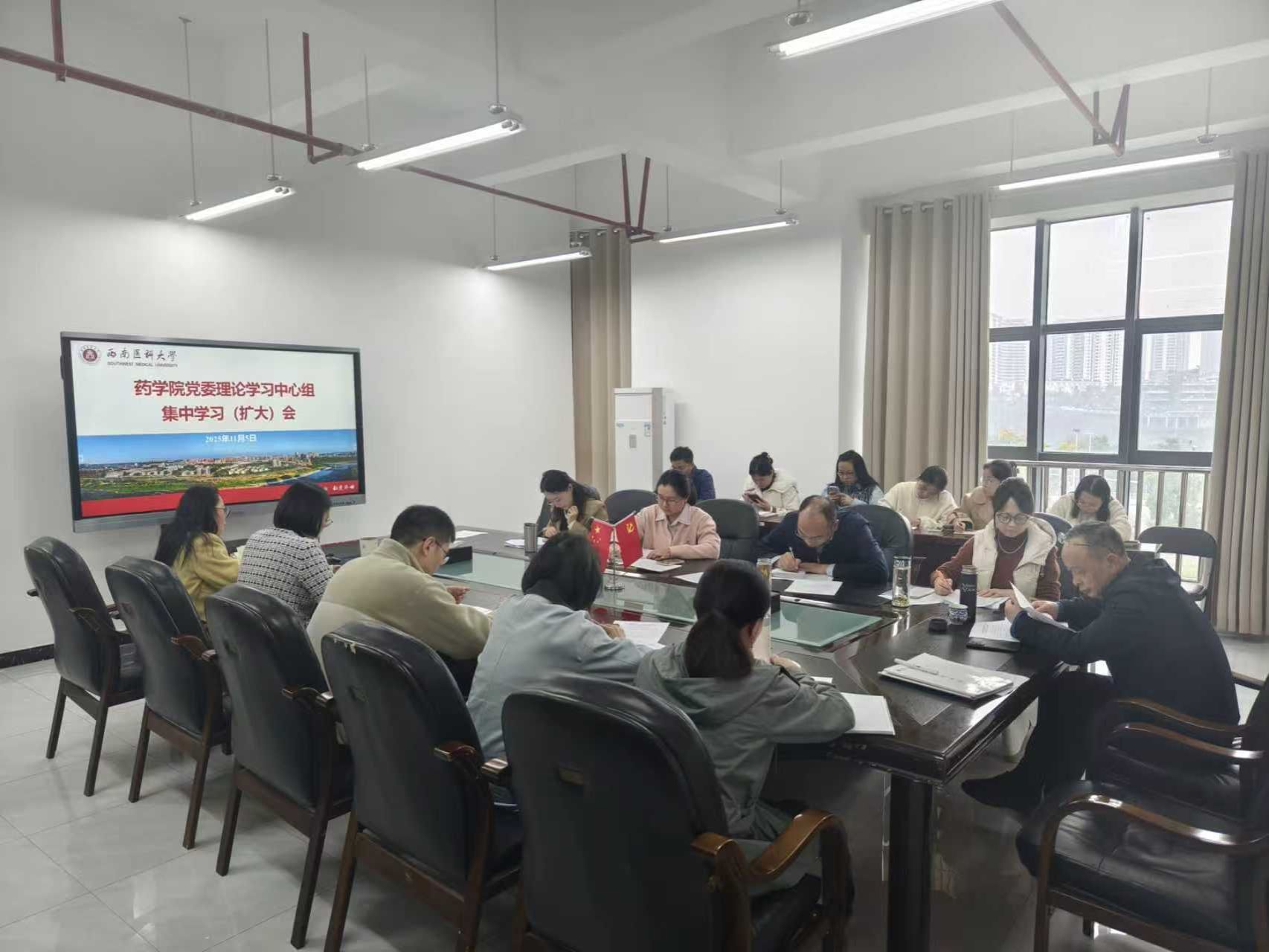 近日,药学院在弘润楼333室召开党委理论学习中心组集中学习(扩大)会,学院处科级干部、党支部书记、内设机构负责人、专职组织员等参加会议。会议由学院党委书记唐艳斌主持。