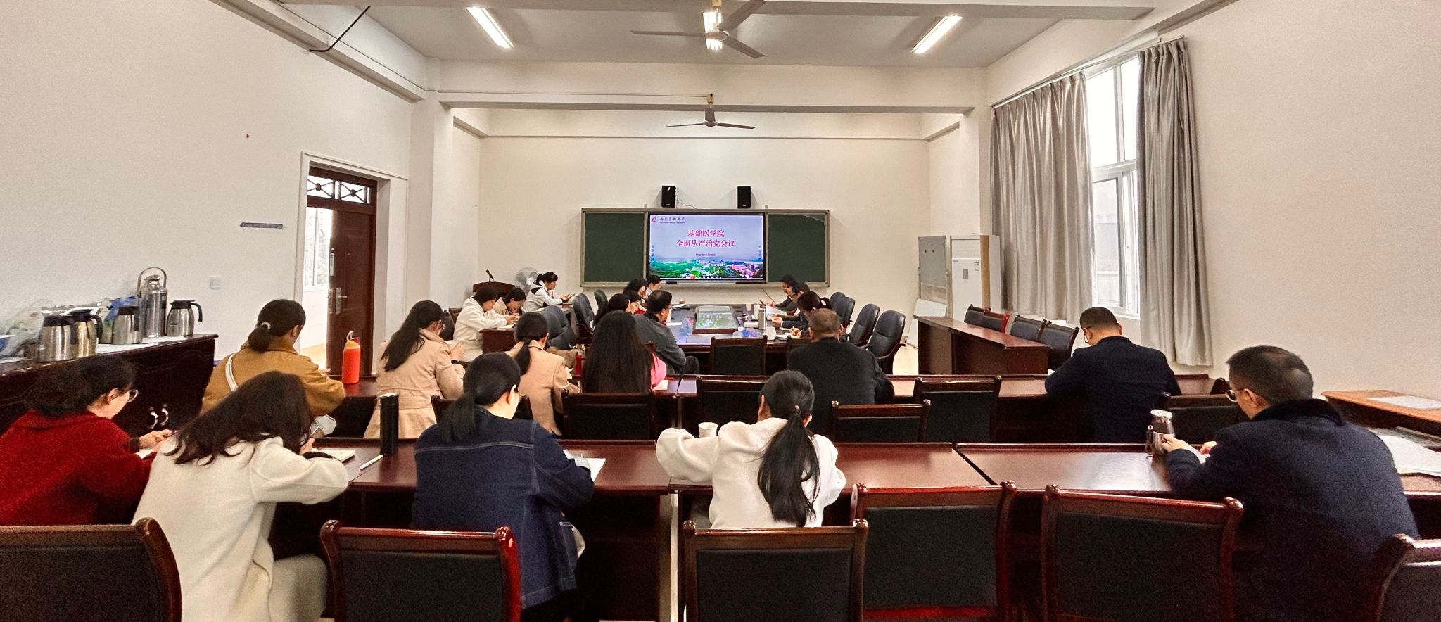 近日,基础医学院在鸿文楼4-1会议室召开全面从严治党工作会议,深入学习贯彻党中央关于全面从严治党的重大部署及学校党委工作要求,系统查摆当前管党治党工作中的短板弱项,精准部署后续重点任务。学院处科级领导干部、各科室主任及党支部书记参加会议,学院党委书记阳静主持会议并讲话。