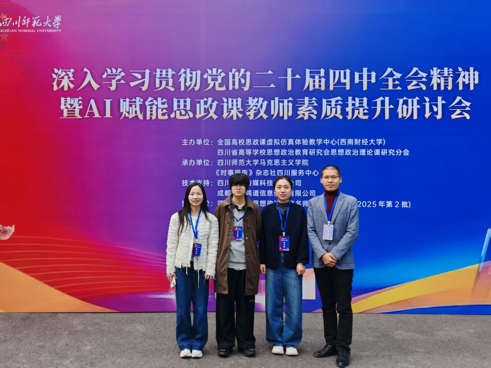 11月14日-15日,四川省深入学习贯彻党的二十届四中全会精神暨AI赋能思政课教师素质提升研讨会在四川师范大学(狮子山校区)召开,马克思主义学院部分教师参加会议。