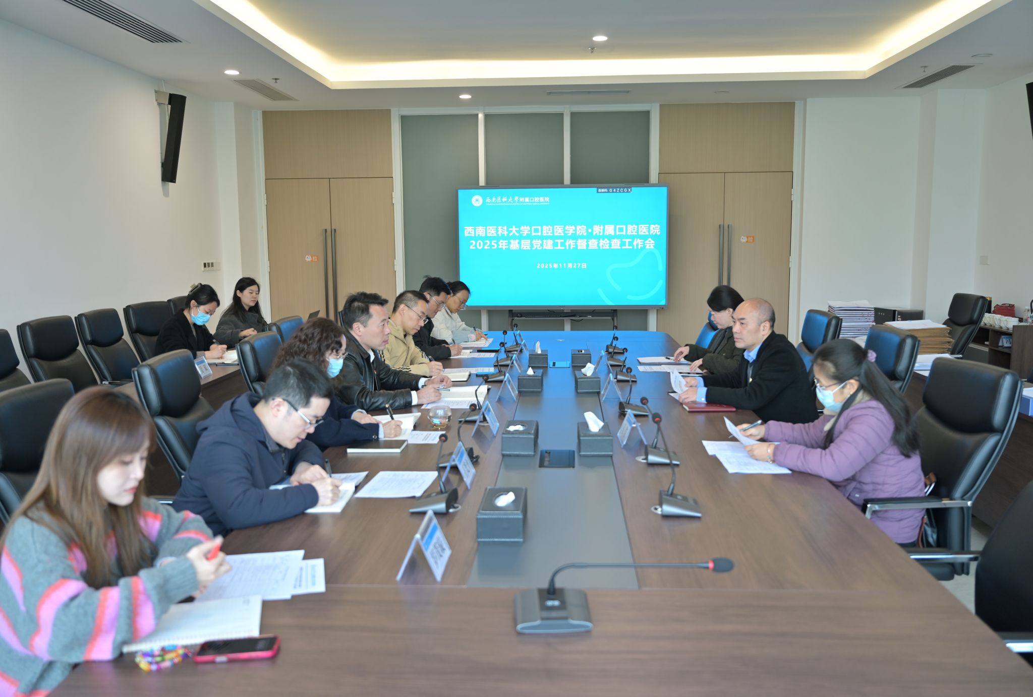 11月27日,附属口腔医院在云峰路院区一会议室召开2025年基层党建工作督查检查工作会。由西南医科大学党委常委、宣传统战部部长冯天明,人文与管理学院党委副书记马俊,宣传部·统战部理论教育科科长赵李梅组成的检查组对我院基层党建工作开展情况进行检查。医院全体在家院领导、党务职能部门负责人及相关工作人员参加会议。
