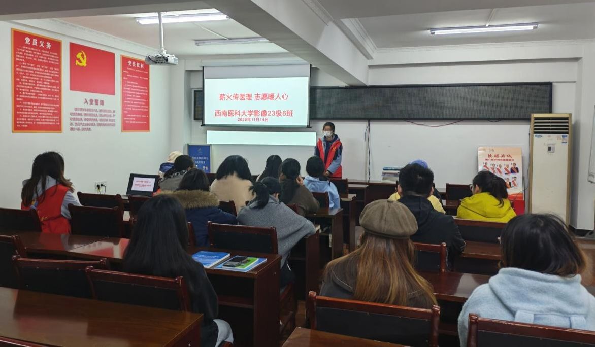 为积极响应新时代党的卫生健康工作方针,引导学生党员和团员深入基层、服务社会,在实践奉献中锤炼党性、践行医者初心,11月14日-12月3日,医学影像系组织学生党员、团员及学生代表前往泸州城区内多个社区开展了“薪火传医理,志愿暖人心”志愿服务活动。