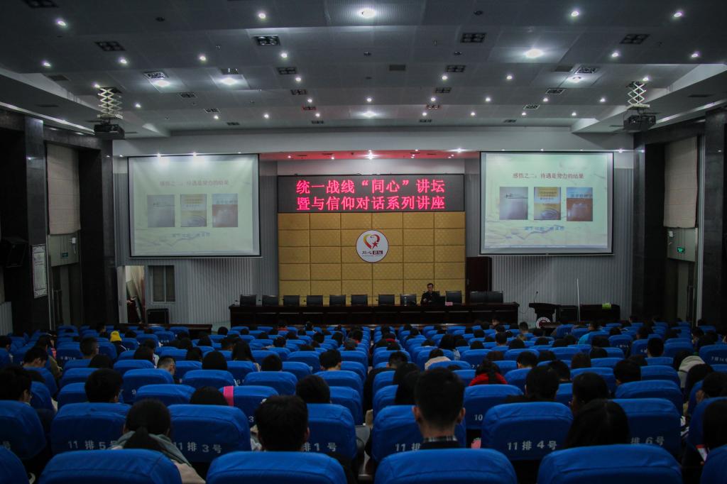近日,由西南医科大学党委统战部和共青团西南医科大学委员会联合主办的统一战线“同心”讲坛暨与信仰对话系列讲座在逸夫图书馆学术报告厅举行。本次讲座邀请到民建西南医科大学支部主委皇甫翰深副教授作题为“无悔人生”的专题讲座,学生代表200余人参加了讲座。