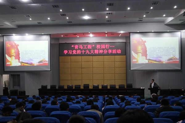 日前,西南医科大学“青马工程”校园行——学习党的十九大精神分享活动在城北校区逸夫图书馆学术报告厅举行。四川省优秀青年马克思主义者培养工程第一届大学生班学员、原西南医科大学学生会常务副主席、原西南医科大学校辩论队队长刘泓金,2015级麻醉学系学生团委副书记康维作了主题演讲。
