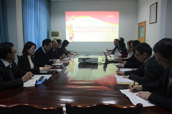 12月7日下午,附属口腔医院2017年第四季度党委中心组学习会在医院小会议室举行,医院党委中心组全体成员参加会议,会议由附属口腔医院党委书记李正新主持。