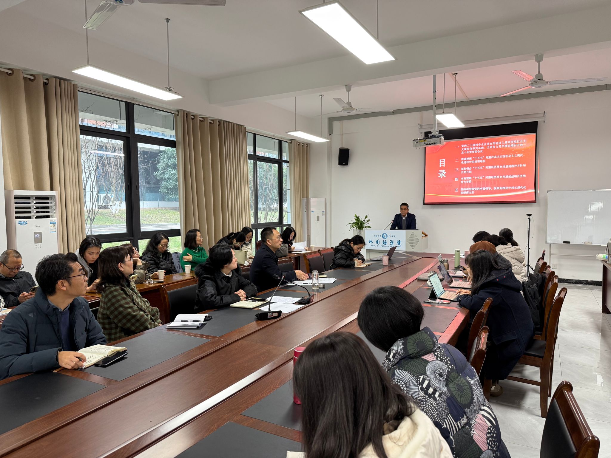 为深入学习贯彻党的二十届四中全会精神,引导全院教职工深刻把握国家发展大局与时代使命,12月25日,外国语学院邀请校理论讲师团专家谷满意教授,在文渊楼134会议室作题为“筑牢思想根基 勇担时代使命”学习贯彻党的二十届四中全会精神宣讲报告会。学院全体教职工参加学习,报告会由学院党委书记蔡鹏飞主持。