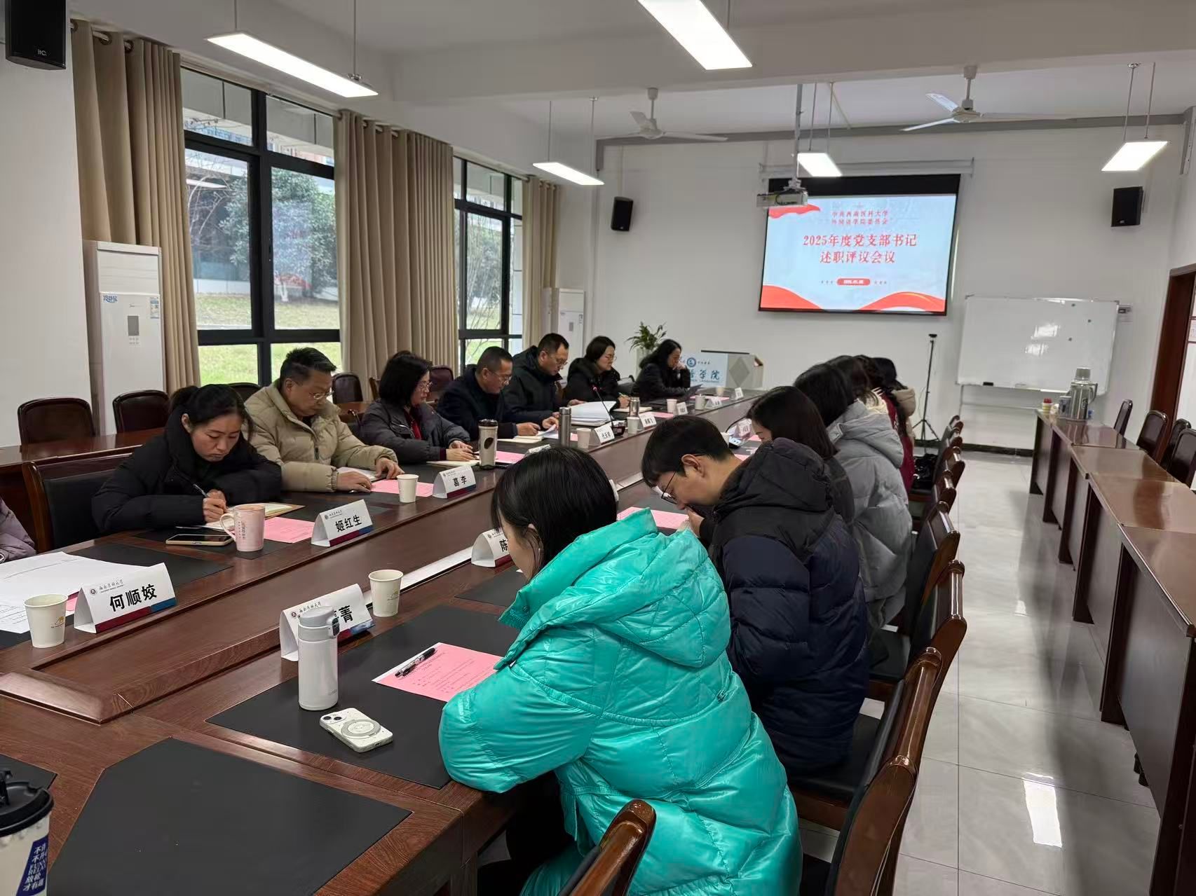述职与点评环节结束后,与会人员结合现场述职与书面述职以及日常了解情况,以严肃认真的态度对各党支部书记2025年度抓党建工作情况进行了现场评议。