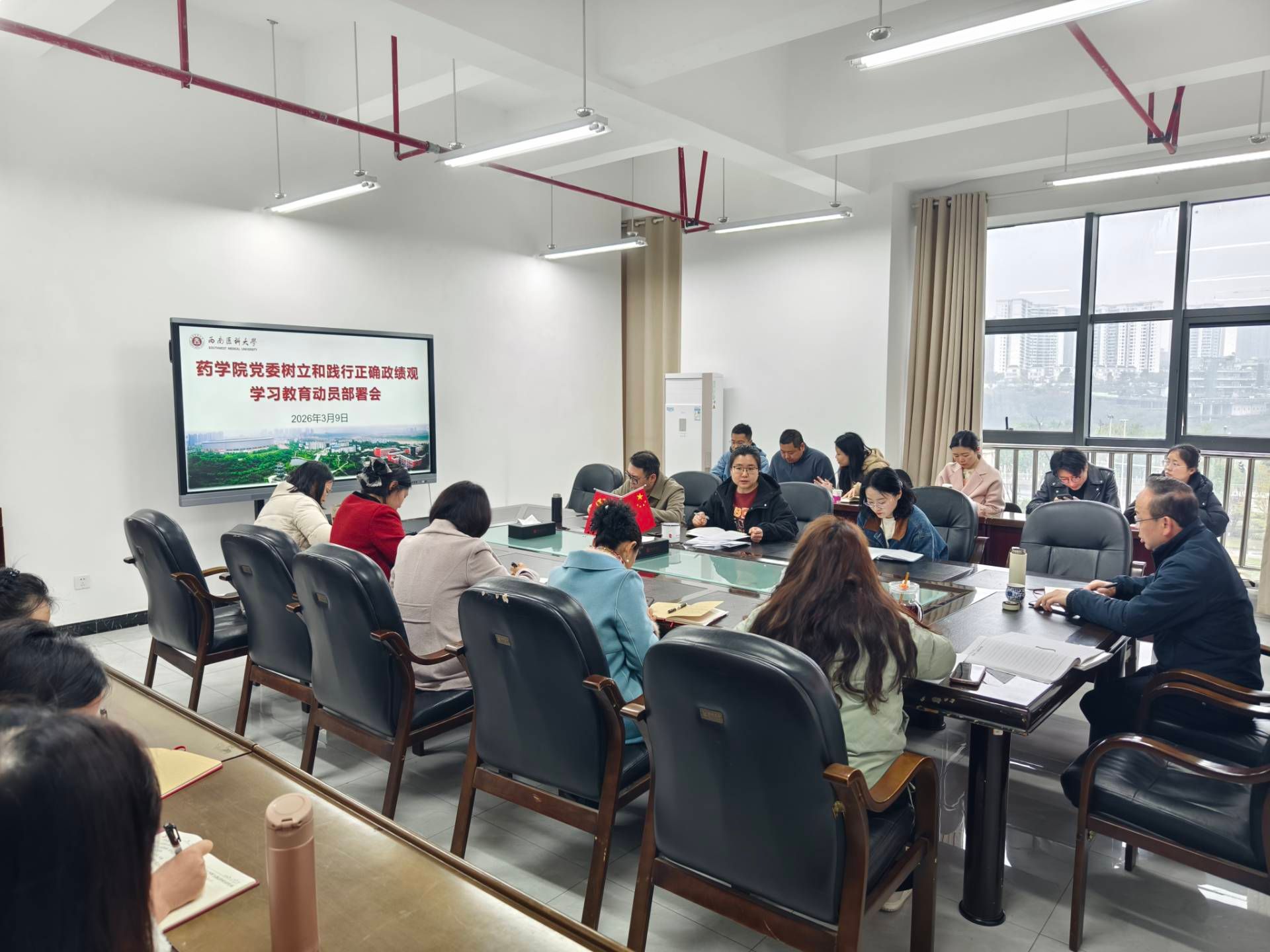 3月9日,药学院党委在弘润楼333会议室召开树立和践行正确政绩观学习教育动员部署会。药学院党委委员、党支部书记、教研室主任、实验室主任和科研团队负责人参加会议,会议由药学院党委书记唐艳斌主持。