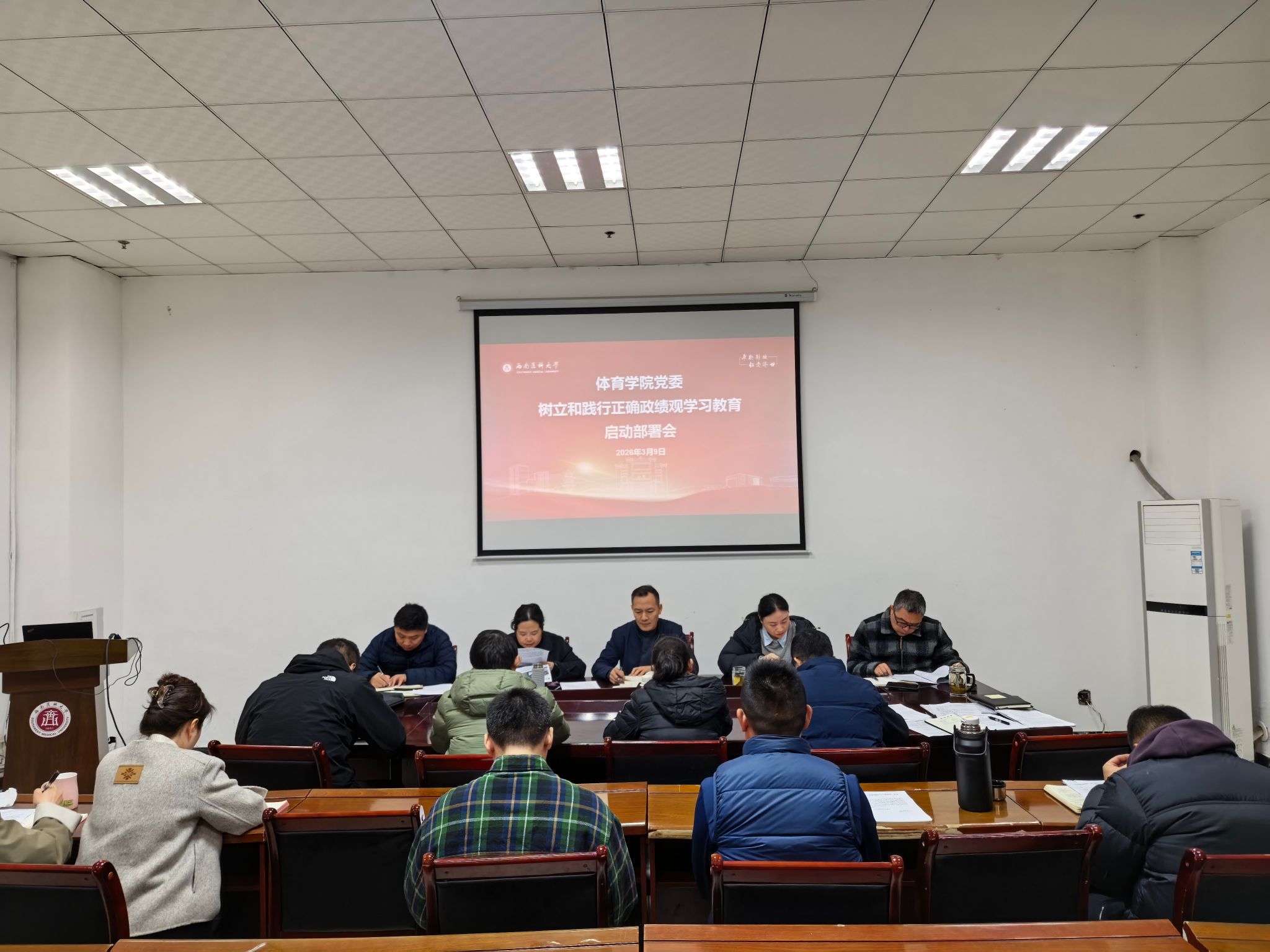 会议集中传达学习了中央、省委、学校关于树立和践行正确政绩观学习教育的相关会议精神、工作要求和《西南医科大学树立和践行正确政绩观学习教育工作方案》,并对体育学院开展树立和践行正确政绩观学习教育进行了部署和强调。