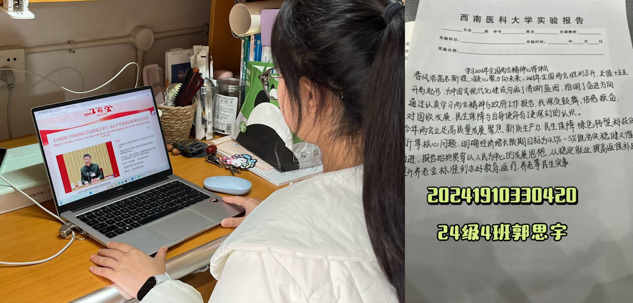 活动期间,同学们积极响应,通过研读报告、观看解读视频等方式深入学习两会精神,围绕政府工作报告中关于卫生健康、民生保障等重要论述展开思考。同学们结合康复专业特色,将理论学习与使命担当相融合,撰写出情感真挚、认识深刻的学习心得,一篇篇心得字迹工整、视角多元,既有对国家发展成就的自豪之情,也有对康复事业前景的热切期盼,字里行间跃动着学子们心系国事、奋发向上的青春热忱。