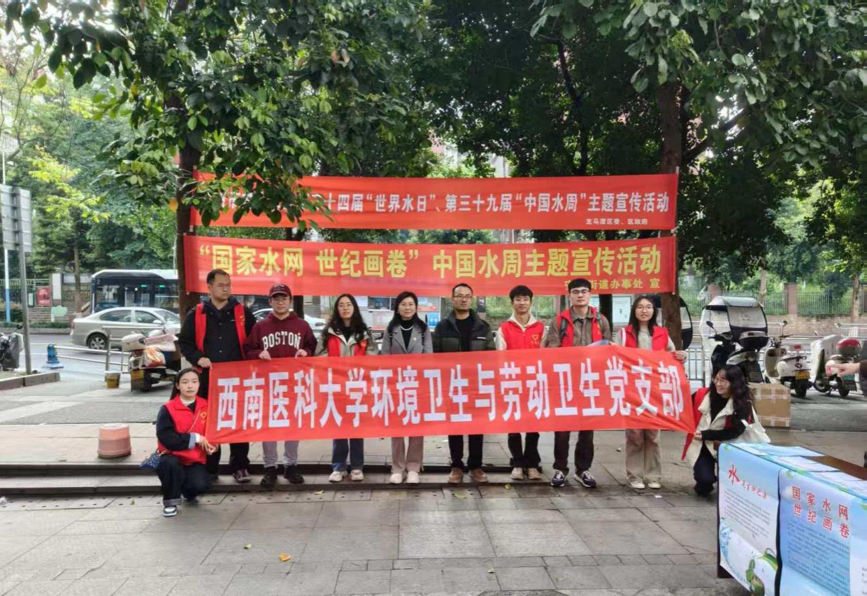 3月20日上午,西南医科大学环境卫生与劳动卫生党支部联合环境健康效应及风险评估泸州市重点实验室,配合泸州市龙马潭区水务局、安宁街道办事处,在汇通超市广场前开展了以“国家水网 世纪画卷”为主题的节水护水宣传活动,以实际行动践行生态文明理念,将节水护水的种子播撒到市民心中。
