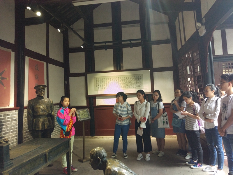 在参观过程中,通过讲解员的讲解,同学们参观了朱德同志的客厅、书房、寝室以及部下的住处。从“在泸县活动年表”中看到朱德大战棉花坡的英勇形象;从诗社和诗联中,展示了朱德探索真理、寻求革命之路的轨迹;从剿匪战斗中,我们看到了朱德多年服务人民、人民拥戴朱德的生动史实,这些历史的陈述,生动形象地展示了朱德在泸州所创下的历史功绩和留下的闪光足迹。