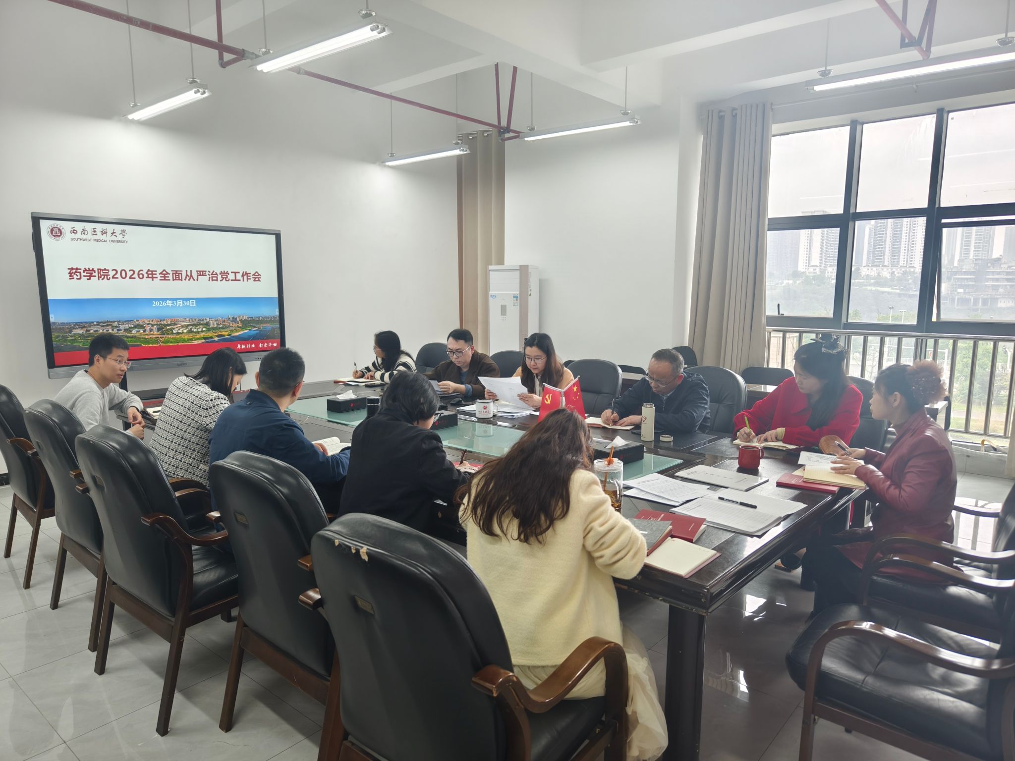近日,药学院在弘润楼333会议室召开2026年全面从严治党工作会。学院党委班子成员、专职组织员、党政办公室主任、党支部书记参加会议。会议由学院党委书记唐艳斌主持。