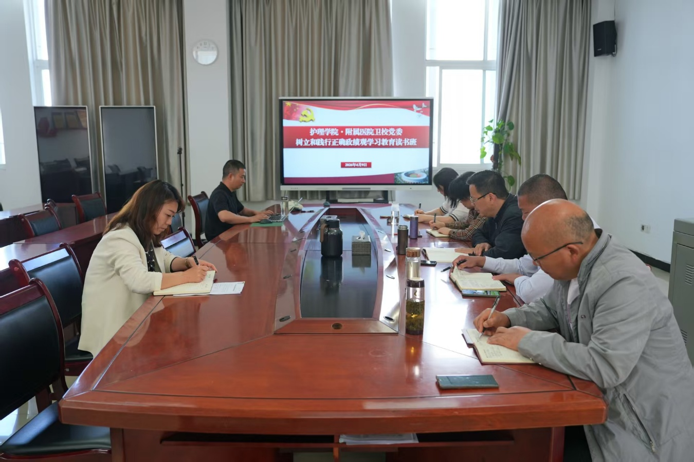 4月7日至9日,护理学院·附属医院卫校举办树立和践行正确政绩观学习教育读书班。院校处级领导班子成员围绕《习近平关于树立和践行正确政绩观论述摘编》开展集中学习和交流研讨,进一步树牢正确政绩观,强化宗旨意识、责任意识和担当意识,切实把学习成果转化为推动院校高质量发展的实际成效。