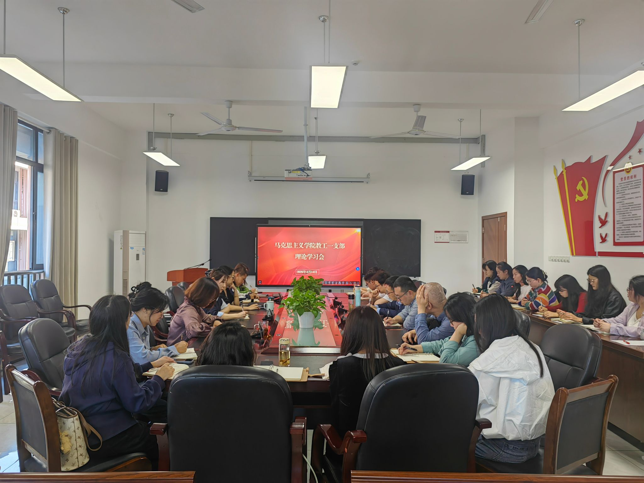 为深入学习贯彻习近平新时代中国特色社会主义思想,进一步提升教职工党员的政治素养和理论水平。4月14日,马克思主义学院教职工一支部在文渊楼432会议室组织开展政治理论学习,会议由党支部书记罗蓓主持,支部全体党员参会。