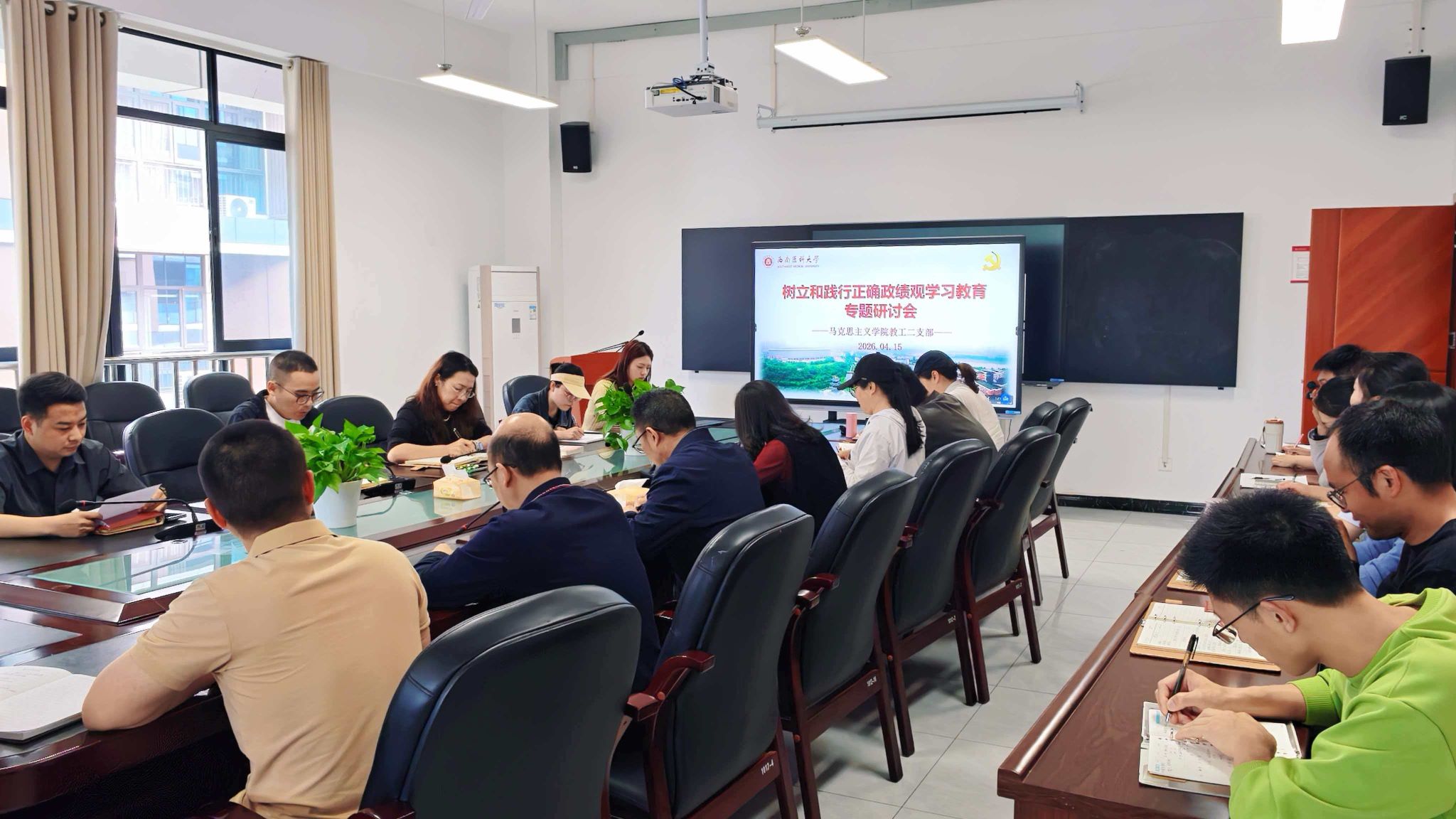为深入学习贯彻习近平总书记关于树立和践行正确政绩观的重要论述,强化党员教师党性修养与实干担当,4月15日下午,马克思主义学院教工二支部在文渊楼432会议室开展树立和践行正确政绩观学习教育专题研讨会。支部全体党员教师参加会议。