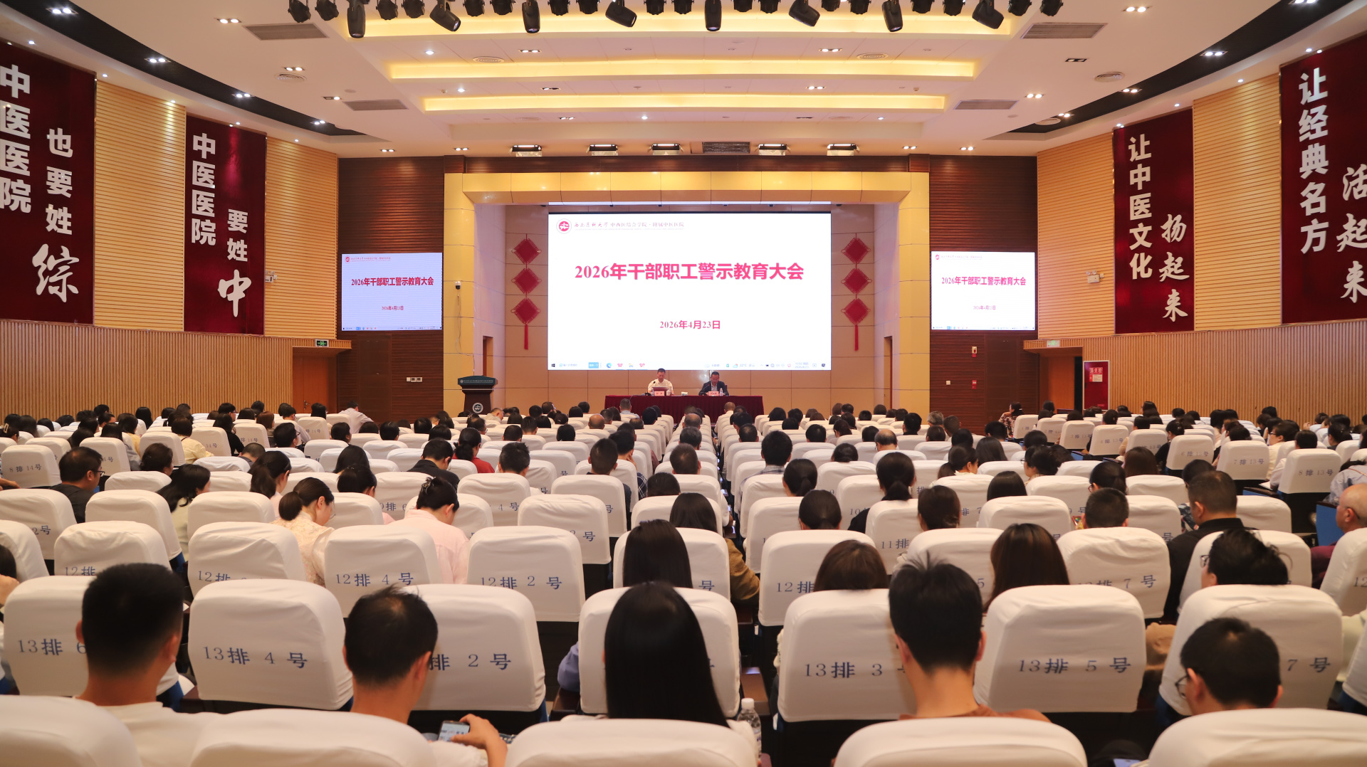 医院全体处科级干部、党支部书记、临床及辅检辅助科室主任(正副职)、护士长(正副职)、教研室主任、重点岗位人员300余人参加了会议。