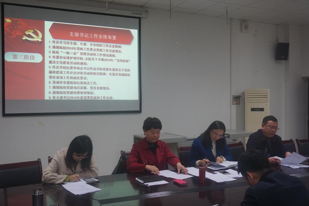 11月5日下午,在城北校区海川楼四楼会议室召开了护理学院·卫校安全维稳工作、党风廉政工作责任书签订暨支部书记工作布置会,院校全体党委委员、纪委委员,处科级干部、教研室主任、实验中心主任、党支部书记和支部委员、本专科辅导员、宣传干事及学生党员代表参加了会议。会议由护理学院·卫校党委副书记、纪委书记李文良主持。