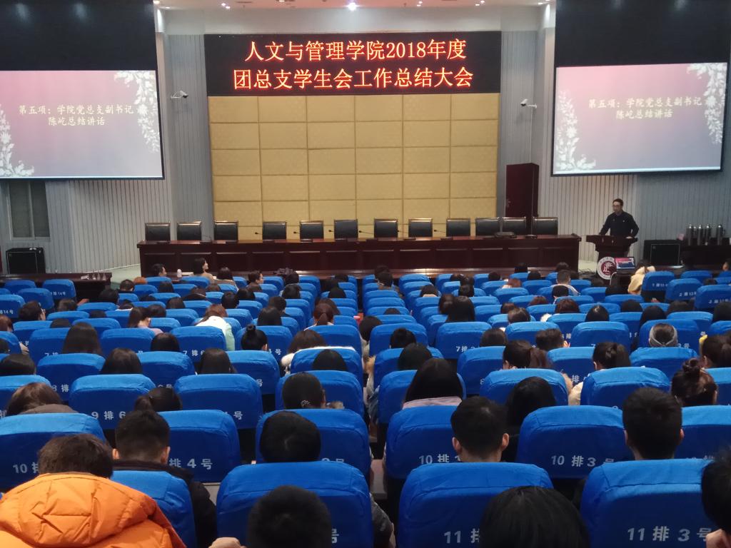 12月21日晚,人文与管理学院2018年度团总支学生会工作总结大会在城北校区逸夫图书馆学术报告厅举行。学院党总支副书记陈屹、学生科全体成员及学生会成员、各班班长、团支书、优秀寝室室长代表参加会议。
