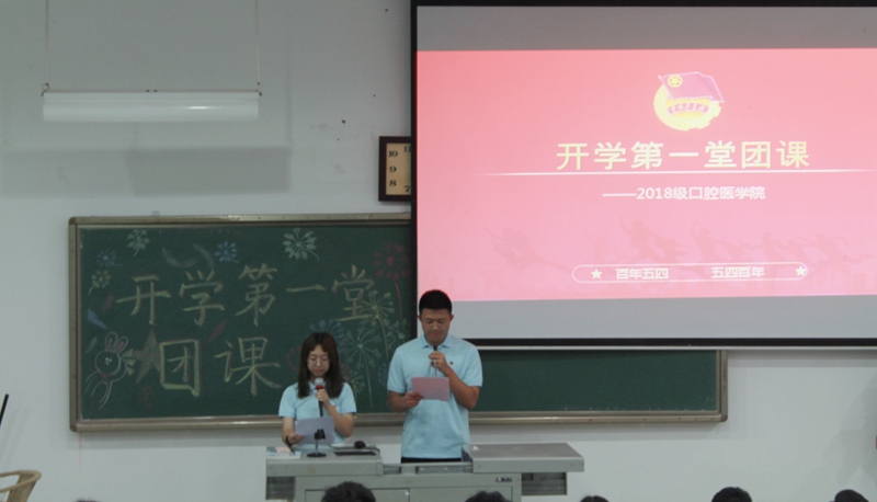 9月18日,为庆祝新中国成立70周年,纪念“五四”运动100周年“九•一八”事变88周年,口腔医学院分团委开展“开学第一节团课”学习活动。2018级全体团员参加了本次活动。