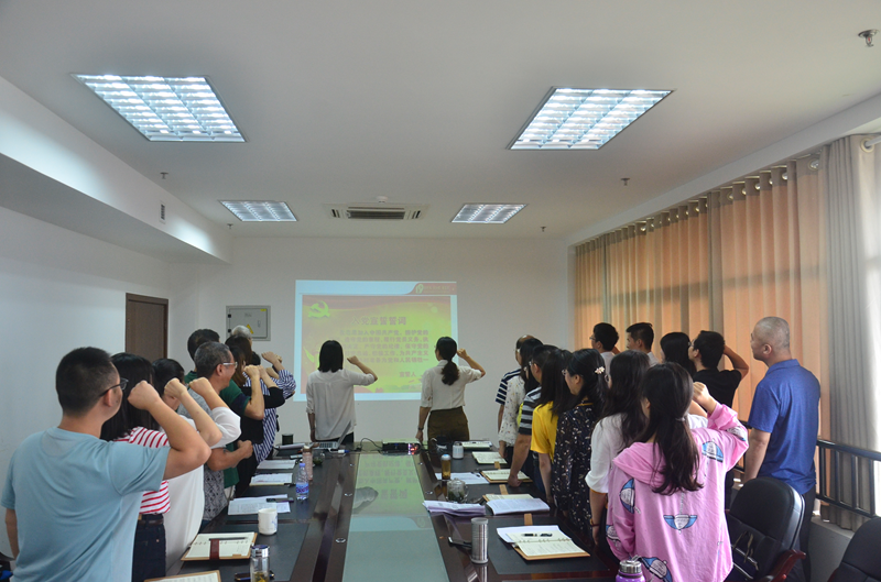 活动伊始,在黄晓利的带领下,马克思主义学院全体党员教师聚集在党旗下,重温入党誓词。