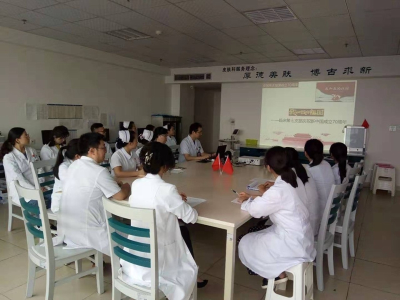 活动中,附属中医医院临床第七党支部党员观看了“开国大典彩色影像资料”和《我和我的祖国》电影预告片;附属中医医院临床第七党支部书记张剑作了《抓好“四个到位” 切实把临床科室发展好》的主题党课教育。