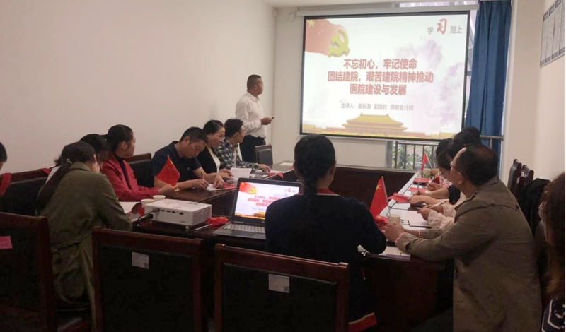 活动中,全体党员观看了2019国庆70周年阅兵,谢长友作了《不忘初心,牢记使命,团结建院,艰苦建院精神推动医院建设与发展》专题讲座,表彰了学习强国学习标兵。