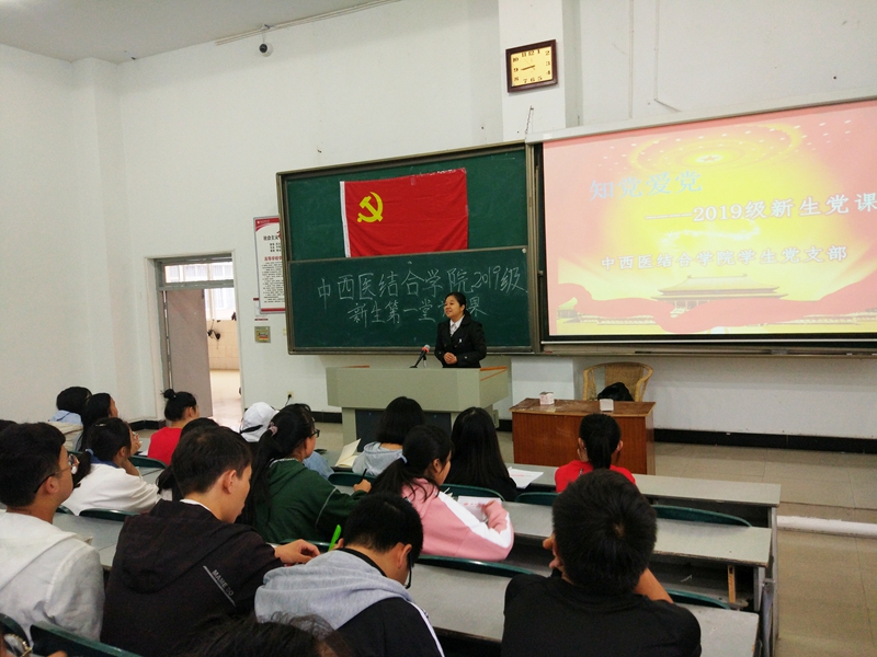 10月12日上午,中西医结合学院2019级新生入学教育之新生第一堂党课在荟文楼302教室举行。此次党课由中西医结合学院学生党支部书记马俊主讲,中西医结合学院2019级全体同学参加此次党课学习。