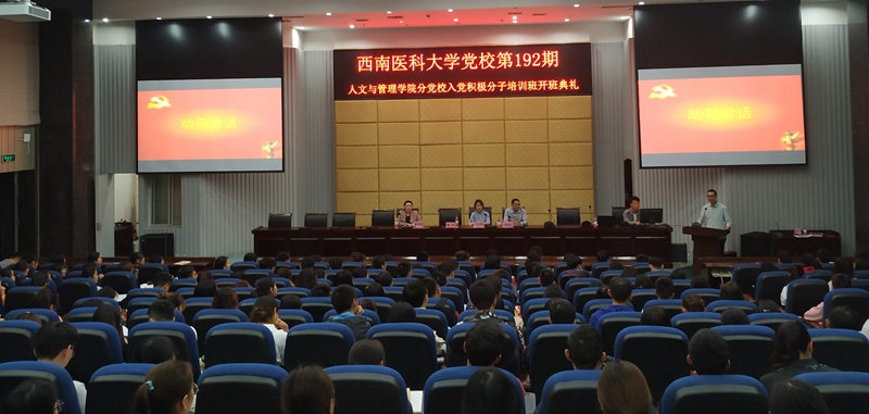 10月18日晚,西南医科大学党校第192期暨人文与管理学院分党校第23期入党积极分子培训班开学典礼在城北校区图书馆学术报告厅举行。人文与管理学院分党校副校长、党总支副书记陈屹,校务委员吴岩、刘欣、赵李梅,分党校班主任李康以及226名学员参加了开学典礼。开学典礼由李康主持。
