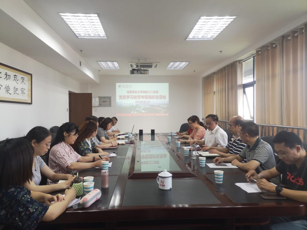 6月11日下午,马克思主义学院教工第二党支部在德诚楼1012会议室举行党史学习教育专题组织生活会。会议由支部书记颜永容主持,全体党员同志参与了本次会议。
