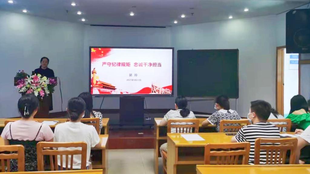 副院长郭玲首先以“严守纪律规矩,忠诚干净担当”为题,上了一堂生动的主题教育专题党课。郭玲以个案为例,鞭策党员同志严守党的纪律,以良好的学风、文风、教风抓教育,不断锤炼党性修养、锻造过硬作风。
