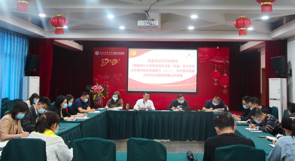 最后,代天祥同志要求各党支部、各科室认真学习、贯彻落实上级党委关于意识形态工作的要求,按照谁主管、谁负责的原则,强化全面领导责任,进一步加强意识形态领域管控和意识形态阵地建设。同时,对于医院安全生产工作进行强调,要求各科室高度重视生产安全问题,强化自我安全意识,定期排查安全隐患,筑牢安全防线。
