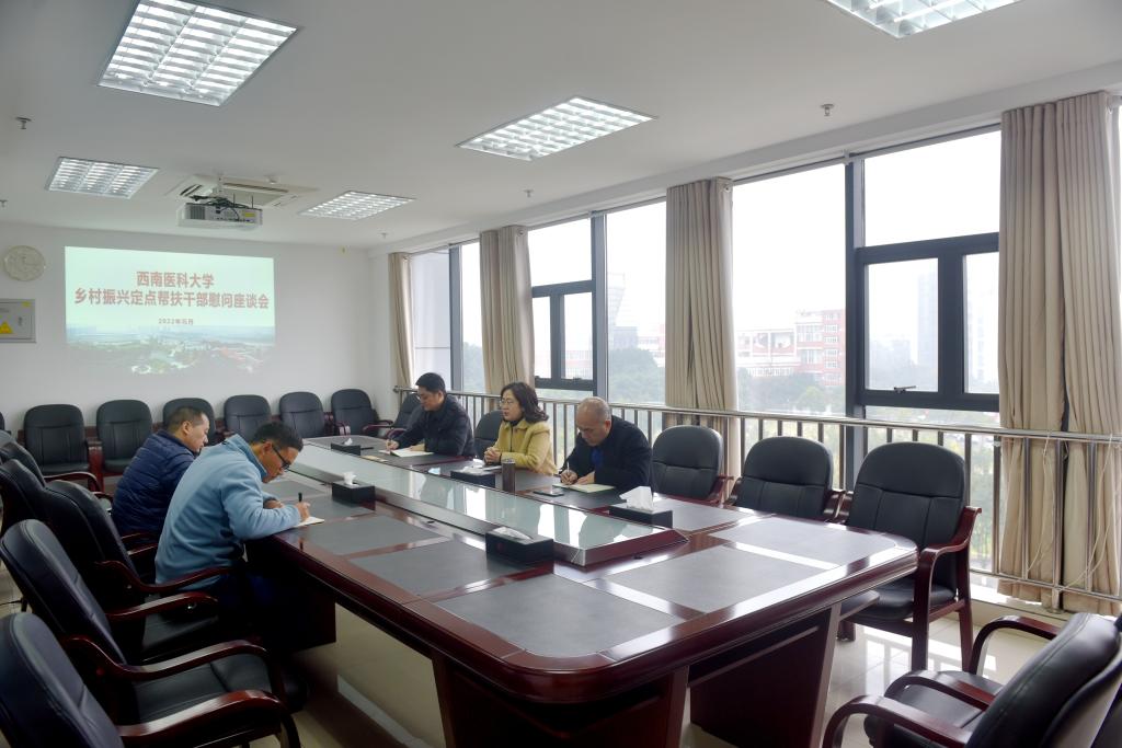 座谈会上,刘毅与两名驻村帮扶干部进行了亲切交谈,听取了他们近期工作情况汇报,详细了解他们的工作和生活状况。刘毅对他们“舍小家、为大家”的情怀、取得的工作实绩以及帮扶干部家属的支持表示祝贺和感谢。她希望驻村干部们要善于学习,抓住驻村锻炼机会,认真履职尽责,加强团结协作,树立西南医大人的良好形象,在巩固拓展脱贫攻坚成果同乡村振兴有效衔接中淬炼作风。她表示学校也将一如既往地支持每位驻村干部安心在农村建功立业,继续做好大家坚强的后盾。