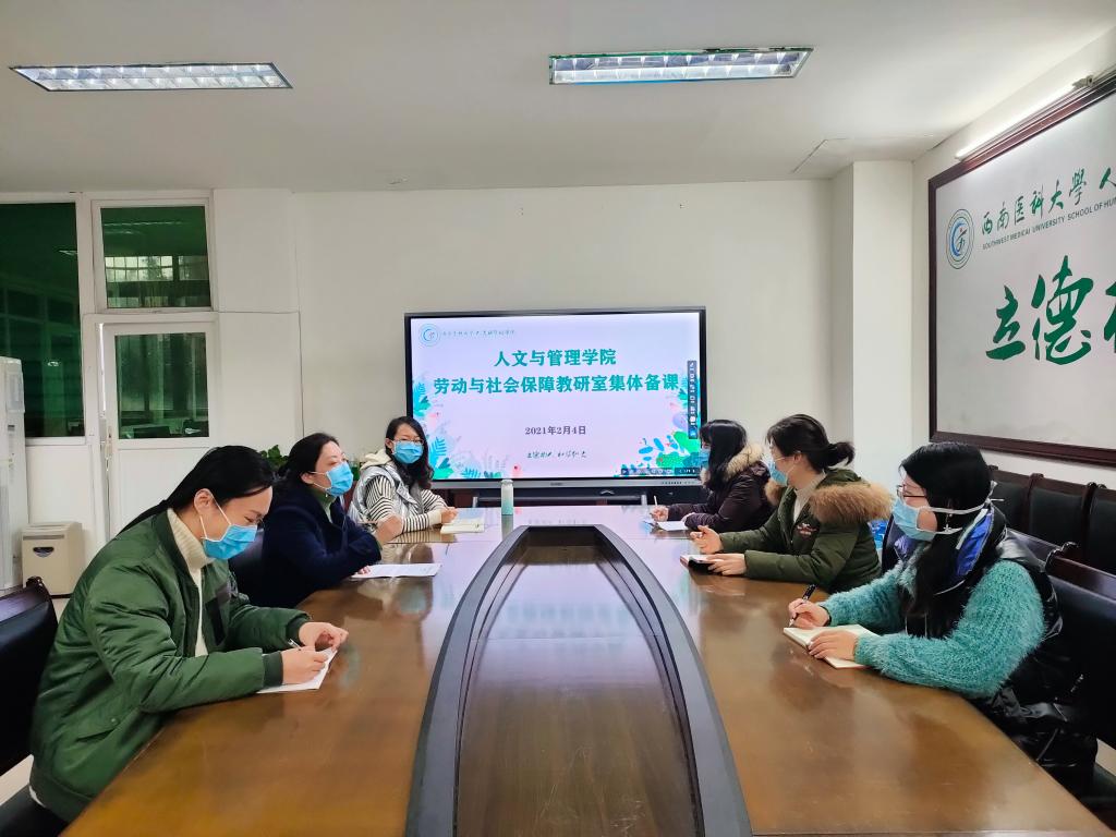 2月4日上午,人文与管理学院劳动与社会保障教研室全体教师在学院会议室开展期末总结大会暨2020-2021学年第二学期教研室集体备课会。会议由教研室主任王敏主持。