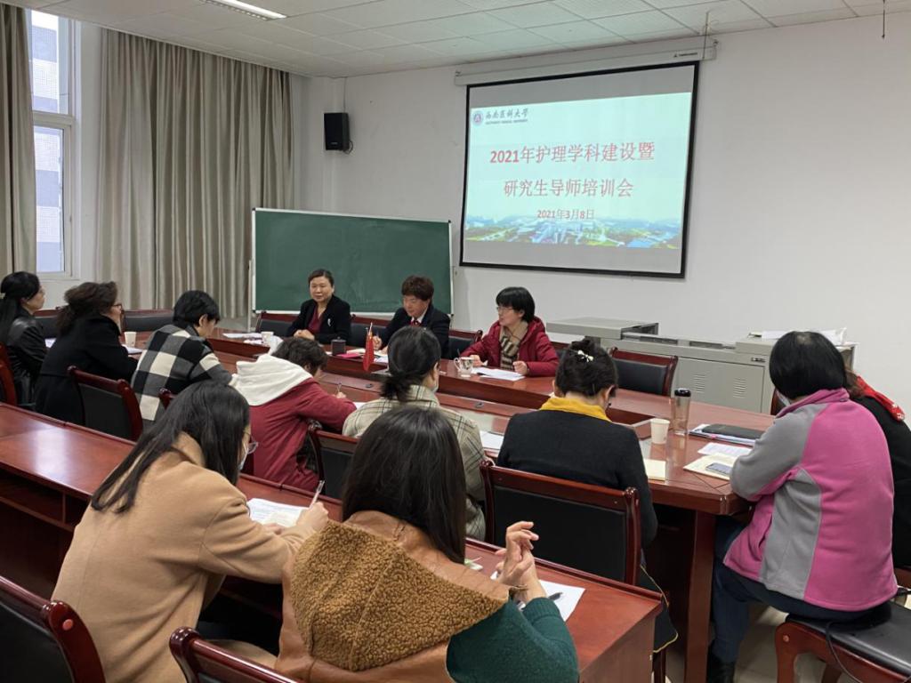 为提升护理学院•卫校院(校)学科建设与研究生教育水平,近日,在城北校区海川楼4楼会议室召开了2021年研究生导师培训暨护理学科建设专项会,全体硕士研究生导师、护理博士、教研室主任、科技厅在研项目负责人等参加了此次会议。会议由护理学院•卫校院(校)长陈燕华主持。
