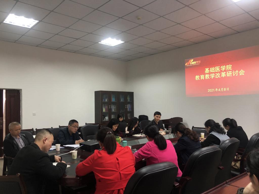 4月8日下午,基础医学院在鸿文楼一楼会议室召开了教育教学改革研讨会。基础医学院党委书记阳静、院长代荣阳、副院长涂江义、曾永秋、教育教学改革团队全体专家以及教务科、基础医学办相关人员参加了本次会议,会议由代荣阳主持。